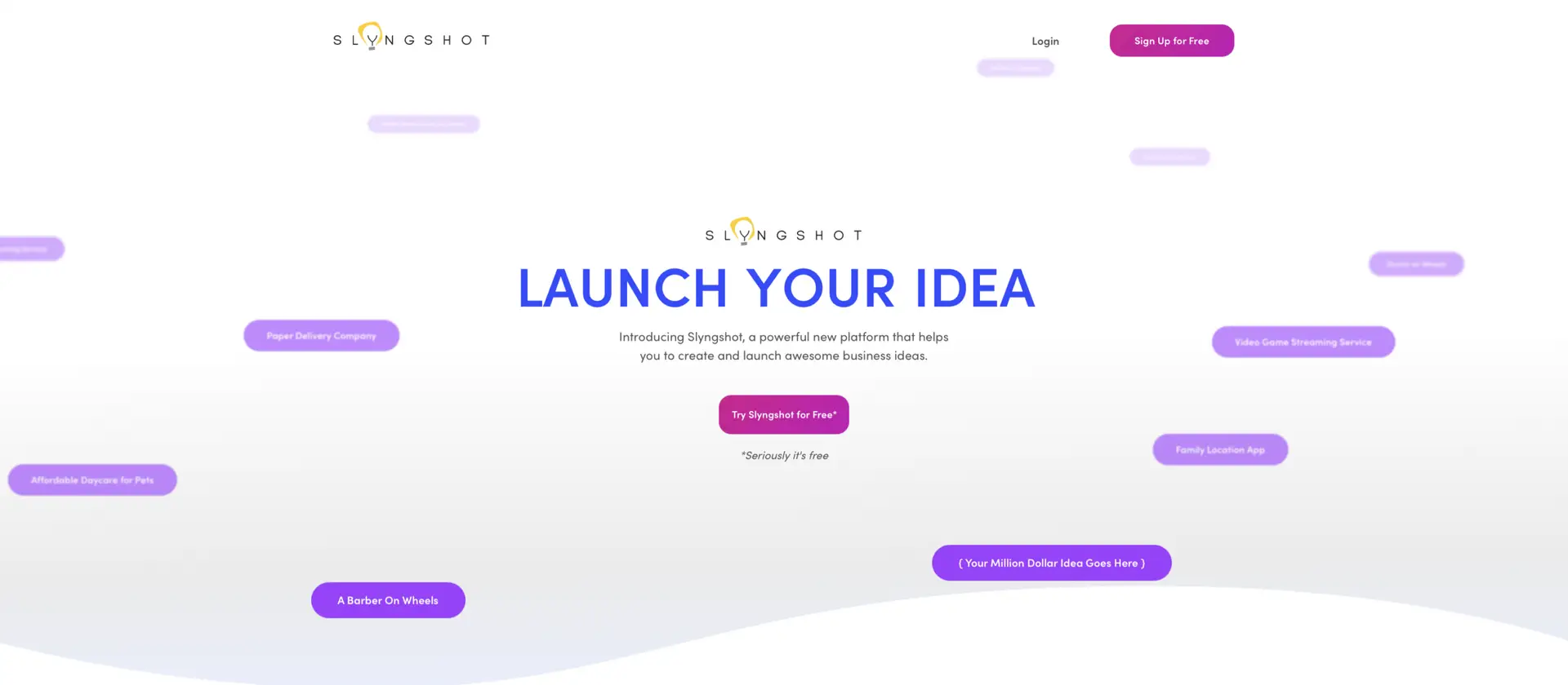 Slyngshot is a web-app that makes it possible for anyone to create and launch awesome business ideas. An innovative, research backed process helps users go from an idea to a shareable website in a matter of minutes. We take care of the complexity so you can focus on the potential your ideas have to create real value.